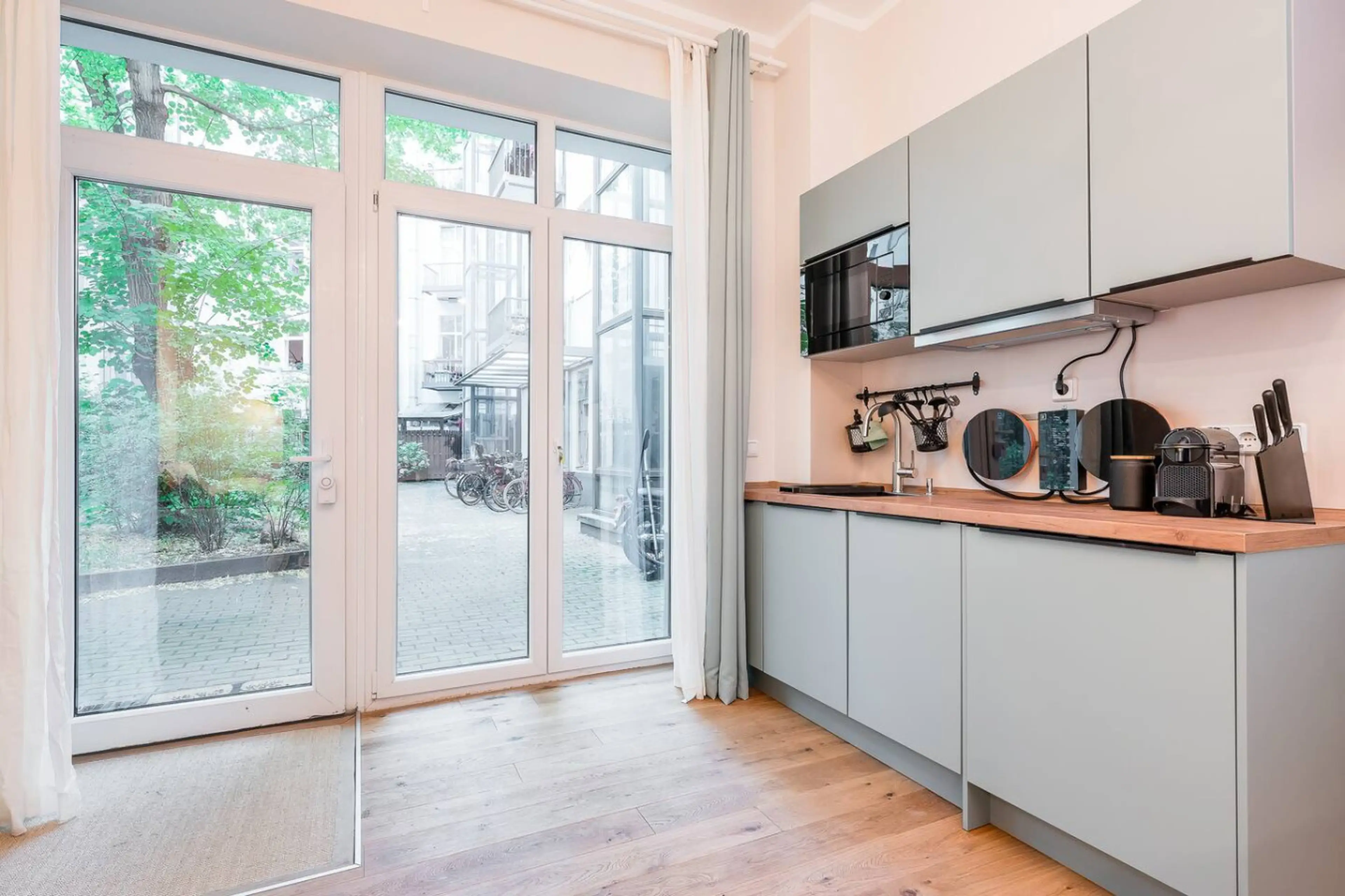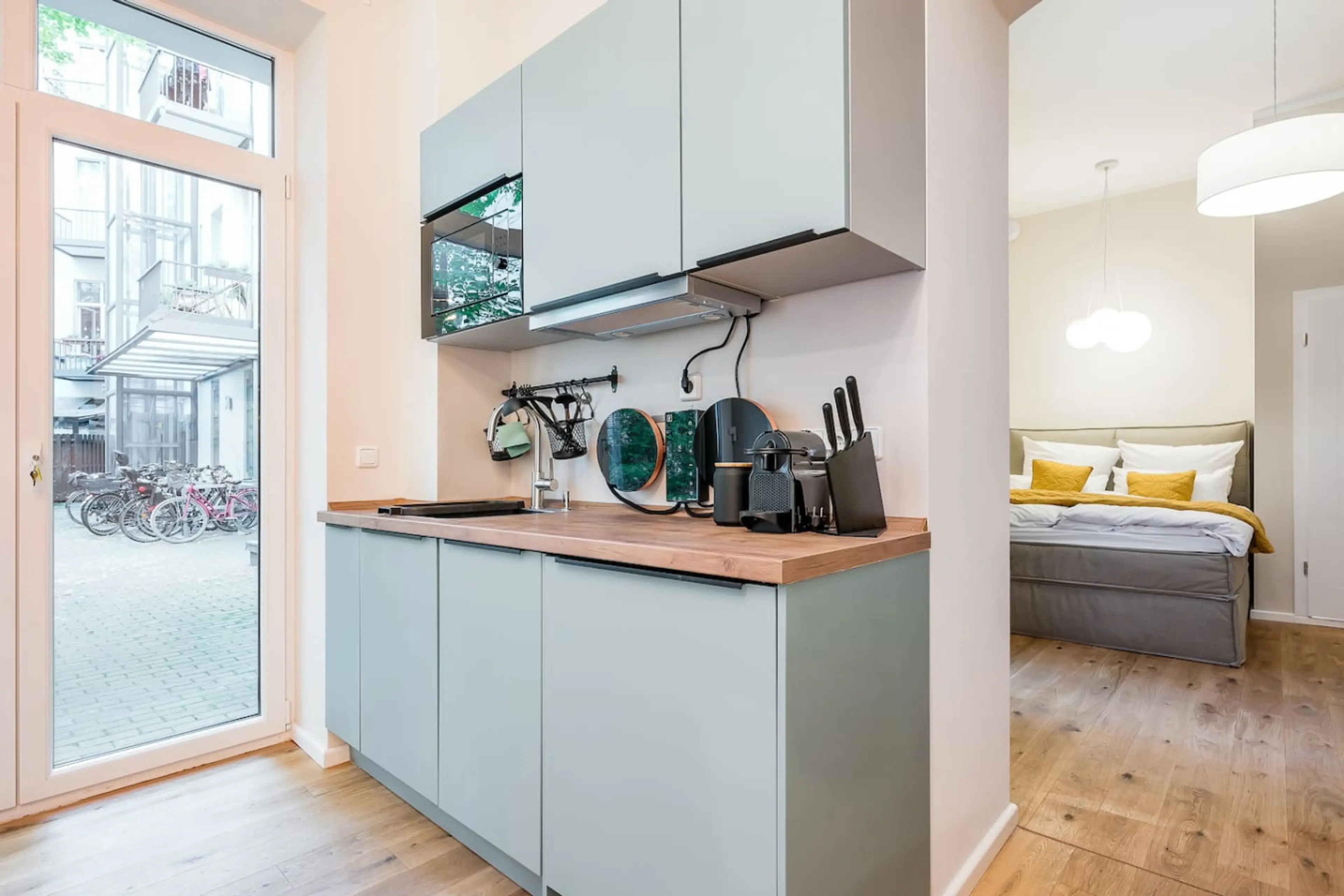 Wir möchten euch in dieser ganz neuen Unterkunft für bis zu vier Personen begrüßen. Ruhig im Hinterhof gelegen, haben Sie ein gemütliches Bett, ein bequemes Schlafsofa und können in der Küche eigene Mahlzeiten zubereiten. Außerdem haben Sie ein komfortables Badezimmer und auch einen Esstisch. Das Ap...